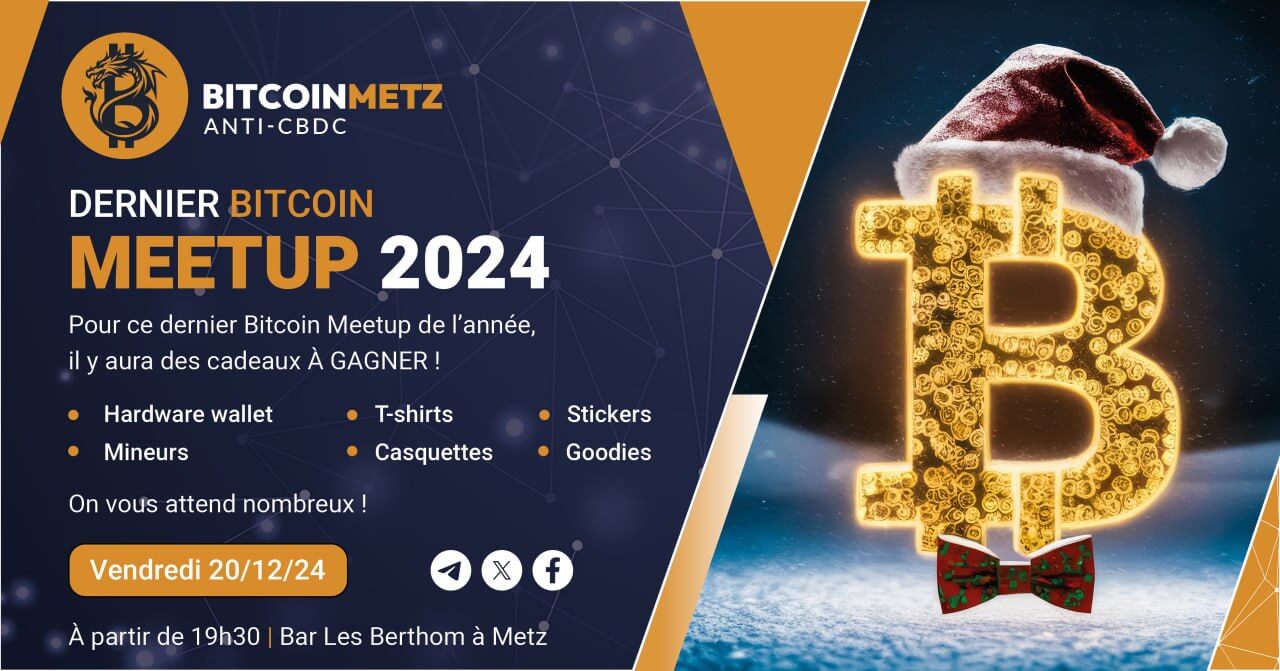 Dernier Bitcoin Meetup 2024 – Cadeaux, Bitcoin & Convivialité à Metz !
